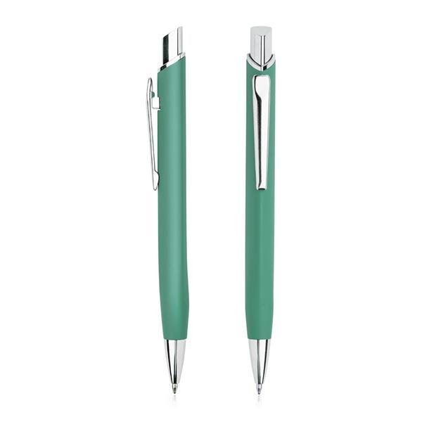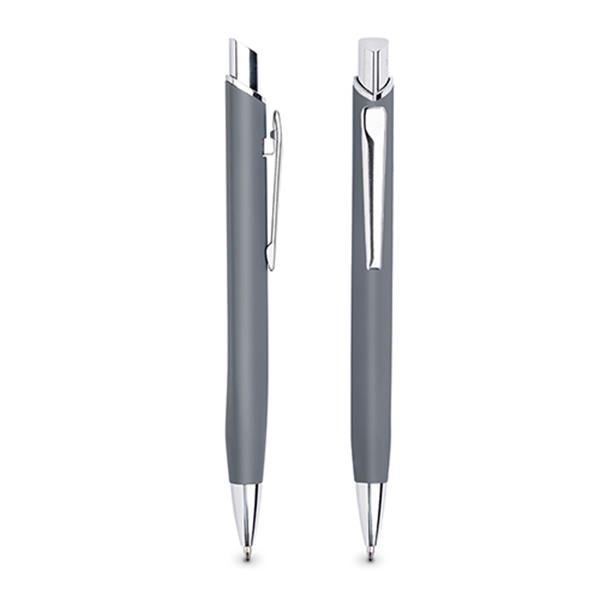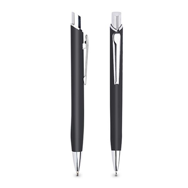 Esferográfica metálica, com acabamento de borracha Crome