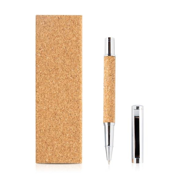 Roller em metal e cortiça, caixa oferta. O luxo da cortiça combinado numa roller metálica e embalado numa caixa de cortiça magnética. Um brinde cheio de elegância, ideal para a sua campanha.